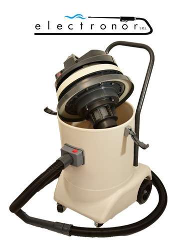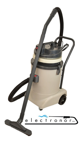 Aspiradora de uso comercial con motor a carbones 1000 w . Apta para aspirar sólidos y líquidos, construida con plástico de alto impacto y montada sobre 4 ruedas giratorias. Posee soporte para utilización de bolsas descartables. Industria argentina.