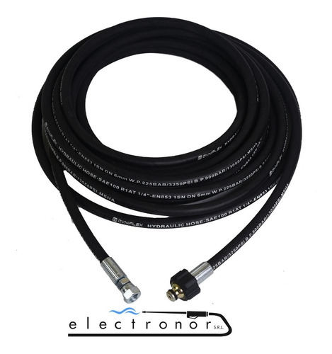Manguera x 15 metros con 1 malla de acero recubierta en Caucho Premiun , hasta 220 bar