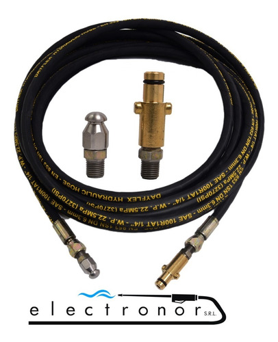 Manguera Profesional de Caucho con 1 malla( R 1) de acero x 5 mts + pico destapa cañerias de 4 orificios (1 frontal + 3 hacia atras) para Hidrolavadora Stihl
