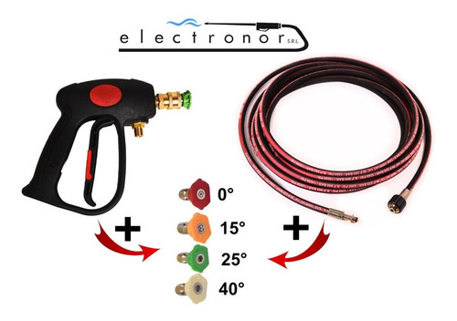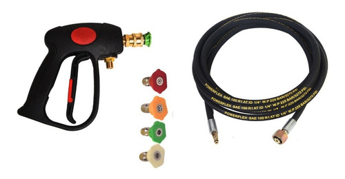 Manguera malla acero X 5 Mts R1 + 4 Picos acople Rápido + Pistola corta Profesional + JUEGOA ACOPLES RAPIDOS 1/4+ PICO ROTOJET PARA Hidrolavadora Anovvi 610-757-768 Lusqtoff LT 590- Sensei- Shimura y otras