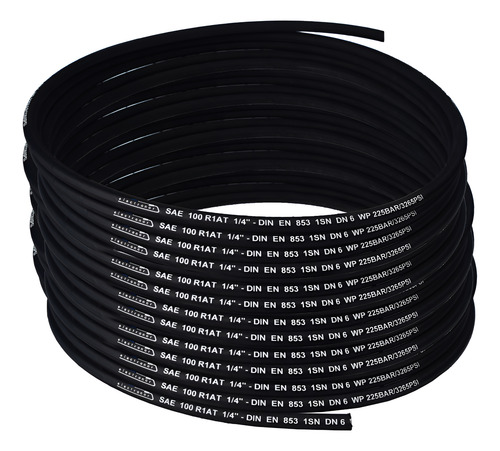 Rollo por 100 metros sin terminales de Manguera de goma caucho con malla de acero, ideal para el uso continuo, resiste hasta 350 bar de presión